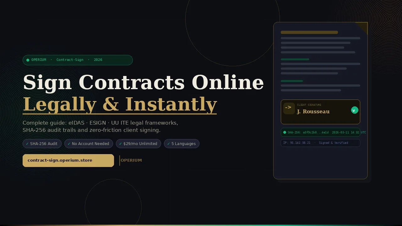 Elektronische Signaturen sind in über 60 Ländern rechtlich bindend — dennoch versenden die meisten Freiberufler und Agenturen Verträge noch als E-Mail-Anhänge und jagen handschriftlichen Unterschriften hinterher, die Wochen später eintreffen oder nie ankommen. Contract-Sign verändert dies grundlegend: Laden Sie ein PDF hoch, platzieren Sie Signaturfelder, und versenden Sie in unter 90 Sekunden einen eindeutigen Signaturlink. Die Automatisierung des gesamten Vertragsprozesses beginnt hier — meta-beschreibungen und häufig gestellte Fragen zu digitalen Signaturen werden in diesem umfassenden Leitfaden beantwortet.